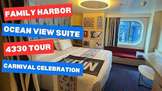 Carnival Celebration Room 4330 - Family Harbor Ocean View Suite Room Tour