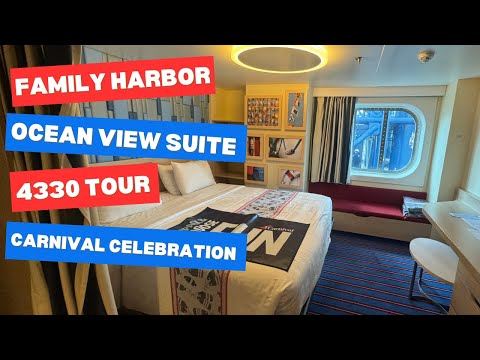 Carnival Celebration Room 4330 - Family Harbor Ocean View Suite Room Tour